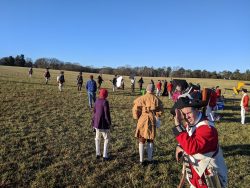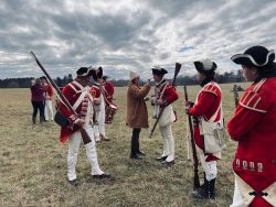 On Friday, January 13 members of the recreated 23rd Foot (Eric, Jon, Graeme, Kevin, Nolan and Tim) took part as extras in the filming of “LUSO” (https://lusotheseries.com/), the pilot program of a Revolutionary War era TV show to be streamed on the Angel Network. We spent the day running to and fro across a muddy field to recreate scenes from the Battle of Camden. Tim sacrificed his groin muscle in defense of King George’s honor! It was windy and cold, but fun was had by all as we got to see the behind the scenes work that goes into filming an “epic” motion picture.