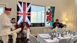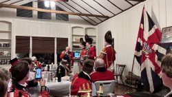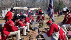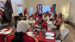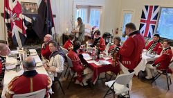 counterattacked driving the rebels off the field. After the successful completion of the battle and some time spent talking to the crowd, we returned to the VRBO and enjoyed a St. David’s Day dinner. Music was provided by our resident fiddler, Fusilier Shane Watson, who did an outstanding job as did our Regimental Drum Major, Joe Siegel, drumming in the Leek Party. Also, a big thanks to Sheila Spaar, Jeannette Brown, Rebekah Brieaddy and Anne Everman for cooking and serving the meal.