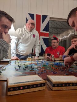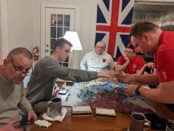 What can we say about Guilford Courthouse – probably the best turnout (16 in attendance) and weekend we’ve had as a unit. Attendees included Alex Ivanchishin, Eric Spaar, Ben Beers, Tim Brieaddy, Kevin McClain, Shane Watson, Denis Messier, Jordan Rowland, Jon Spaar, Jr., Richard Coyle, Lance Davis, Nolin Jones, Rory Moran, Graeme Barclay, Gabe Everman, and Joe Siegel. We rented a VRBO that housed most of us for both Friday and Saturday nights. We played wargames on Friday night and late into the night Saturday after St. David’s Day dinner.
