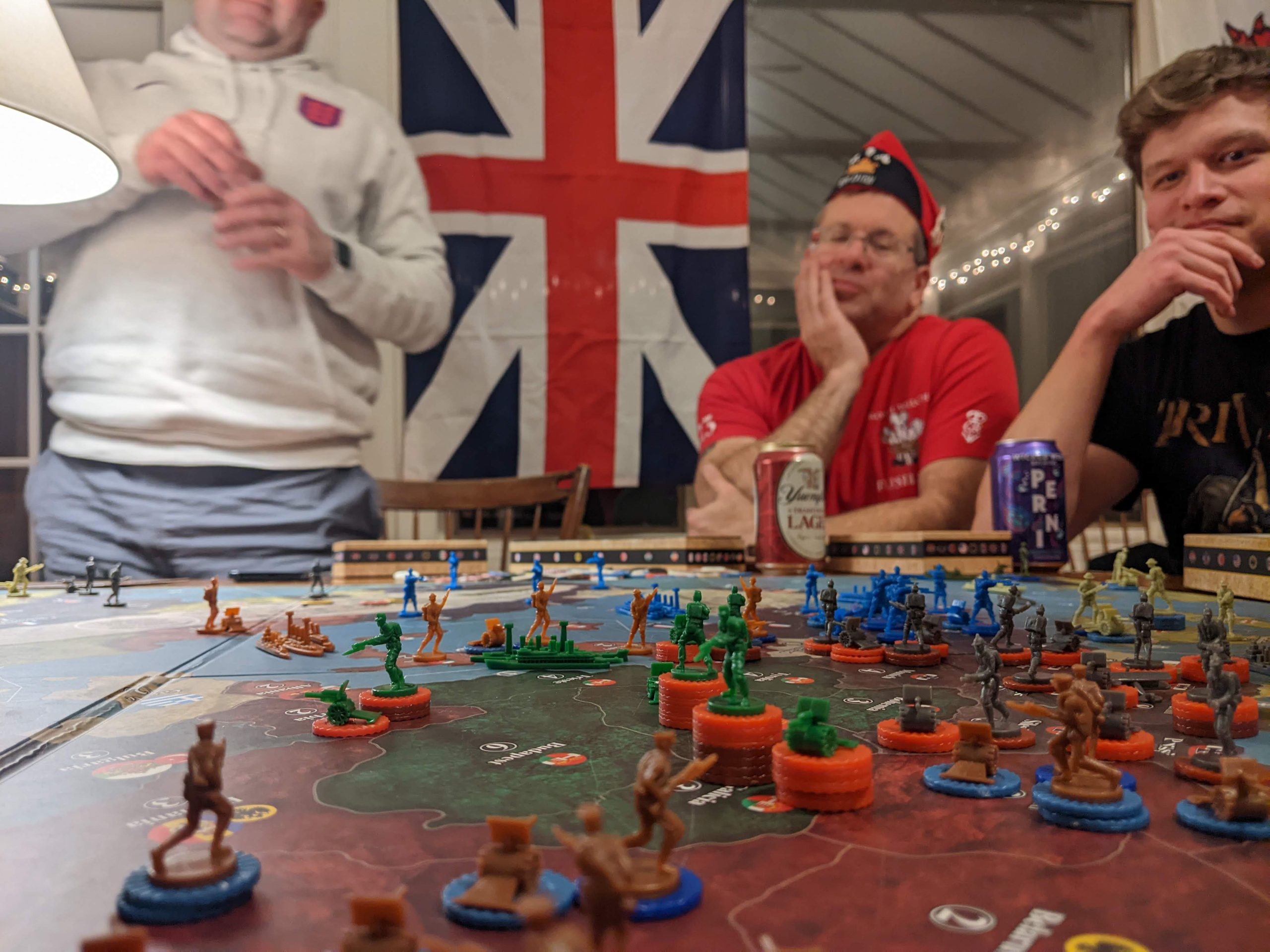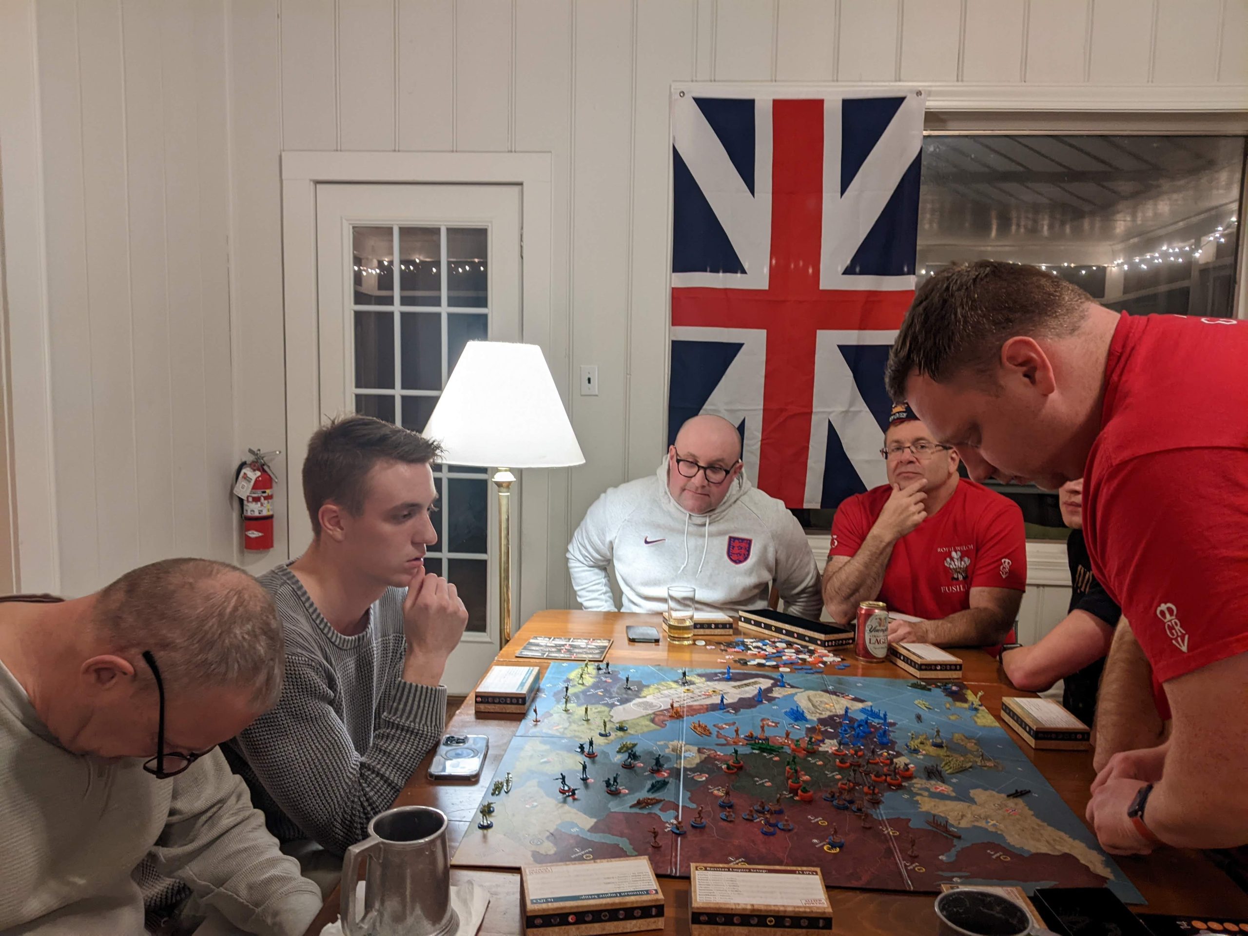 What can we say about Guilford Courthouse – probably the best turnout (16 in attendance) and weekend we’ve had as a unit. Attendees included Alex Ivanchishin, Eric Spaar, Ben Beers, Tim Brieaddy, Kevin McClain, Shane Watson, Denis Messier, Jordan Rowland, Jon Spaar, Jr., Richard Coyle, Lance Davis, Nolin Jones, Rory Moran, Graeme Barclay, Gabe Everman, and Joe Siegel. We rented a VRBO that housed most of us for both Friday and Saturday nights. We played wargames on Friday night and late into the night Saturday after St. David’s Day dinner.