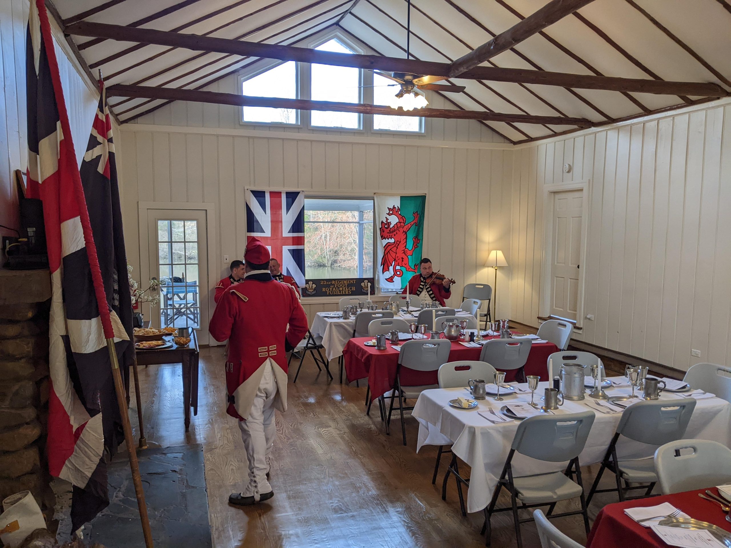 counterattacked driving the rebels off the field. After the successful completion of the battle and some time spent talking to the crowd, we returned to the VRBO and enjoyed a St. David’s Day dinner. Music was provided by our resident fiddler, Fusilier Shane Watson, who did an outstanding job as did our Regimental Drum Major, Joe Siegel, drumming in the Leek Party. Also, a big thanks to Sheila Spaar, Jeannette Brown, Rebekah Brieaddy and Anne Everman for cooking and serving the meal.
