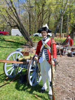 An annual event for the Horsfall Coy that allows us to interact with and educate the public, practice our drill in preparation for Mount Vernon, indulge in some comradery, and for the new Fusiliers, learn more about the Regiment and our uniform. We had a great turnout – 18 in attendance. The crowd was the largest to date. We were the only British unit there so we received much attention. Tim King took the King’s shilling and joined the ranks with his son, Eli. We had our most senior Southern Company Fusilier, Pvt. Richard Coyle, bring his cannon (3 pounder) for static display which drew a lot of attention as well.