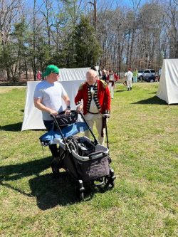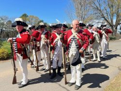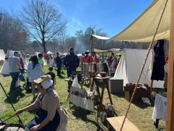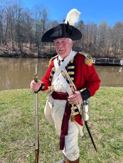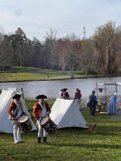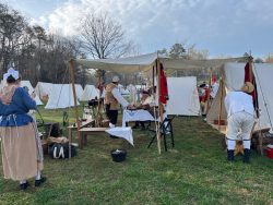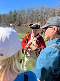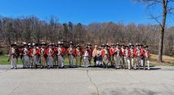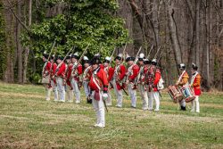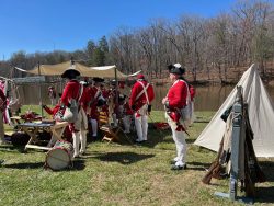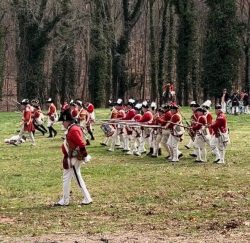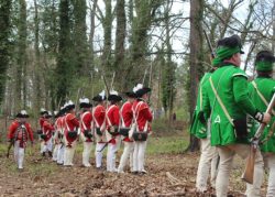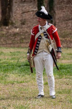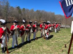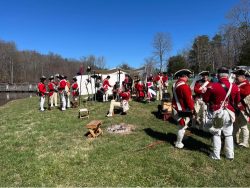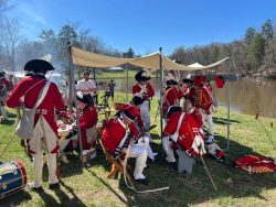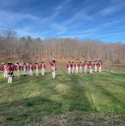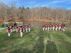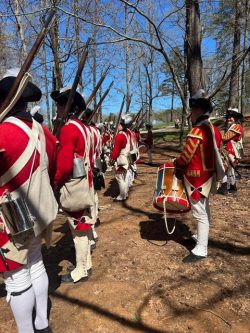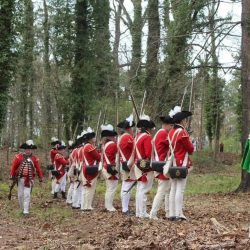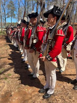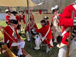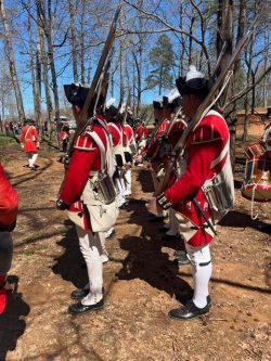 Sunday saw around 21 Fusiliers in attendance. We mustered at 10am for drill and reorganization. We had a different scenario for Sunday—Battle of Wetzell’s Mill, a battle that occurred on 6 March as prelude to Guilford Courthouse—which saw us on the left flank of the British Army. We moved through the woods emerging onto the battlefield facing the Americans. We matched them volley for volley eventually pressing forward with bayonets and forcing them back.