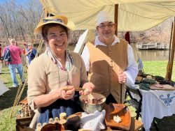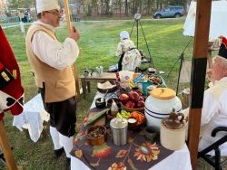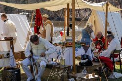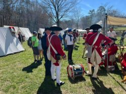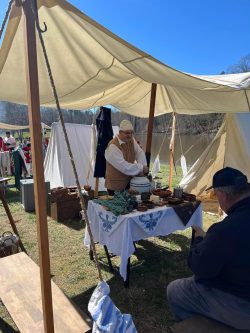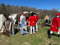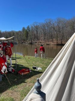 On Saturday we mustered at the battlefield at 9am. It was an impressive site with 27 members in attendance (that’s with a few last-minute cancellations). The 23 rd was far and away the largest British Regiment in attendance and everyone said the unit looked sharp. A special addition to our camp was provided by Kathy and Allen Hughes who set up a tavern complete with authentic cooking demonstrations, delicious food, and comfortable seating for many of us to enjoy throughout the weekend. We hope that they field with us again…they have an open invitation.