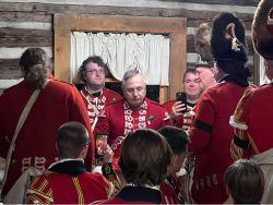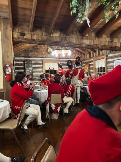 The Fusiliers, invited guests including the 33rd Regiment, began the night listening to Lance Corporal Shane Watson playing his fiddle and partaking in drinks and appetizers. The formal dinner commenced at 6:30pm. Captain Alex Ivanchishin provided some opening remarks and a short remembrance of Tom Pieper and what he meant to the Regiment, followed by the first toast of the evening to Tom. Traditional regimental toasts were then made throughout the dinner. Lastly, the leek party entered and new Fusiliers, promoted Fusiliers, and guests partook in the leek ceremony. The leek was “enjoyed” by many, and some “enjoyed” it several times. A rousing singing of the Men of Harlech ended the festivities.