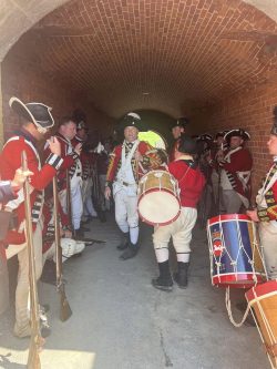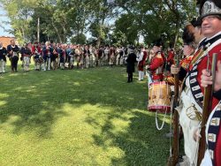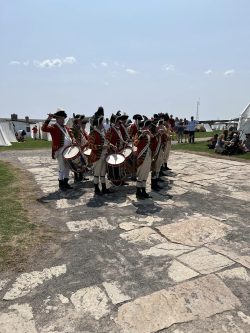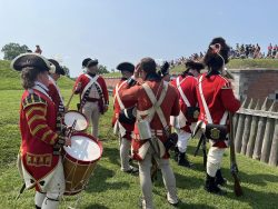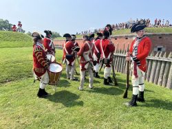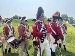 Adding historical context to the force-on-force tactical displays, the weekend also saw a commemoration of the 250th anniversary of the 10th Regiment’s turnover of garrison duty at Fort Niagara to the 8th Regiment. On Sunday, we marched into the fort alongside the 8th to participate in a ceremony recreating their 1774 arrival at the fort, the transfer of responsibility for the garrison, and the departure of the 10th Regiment.