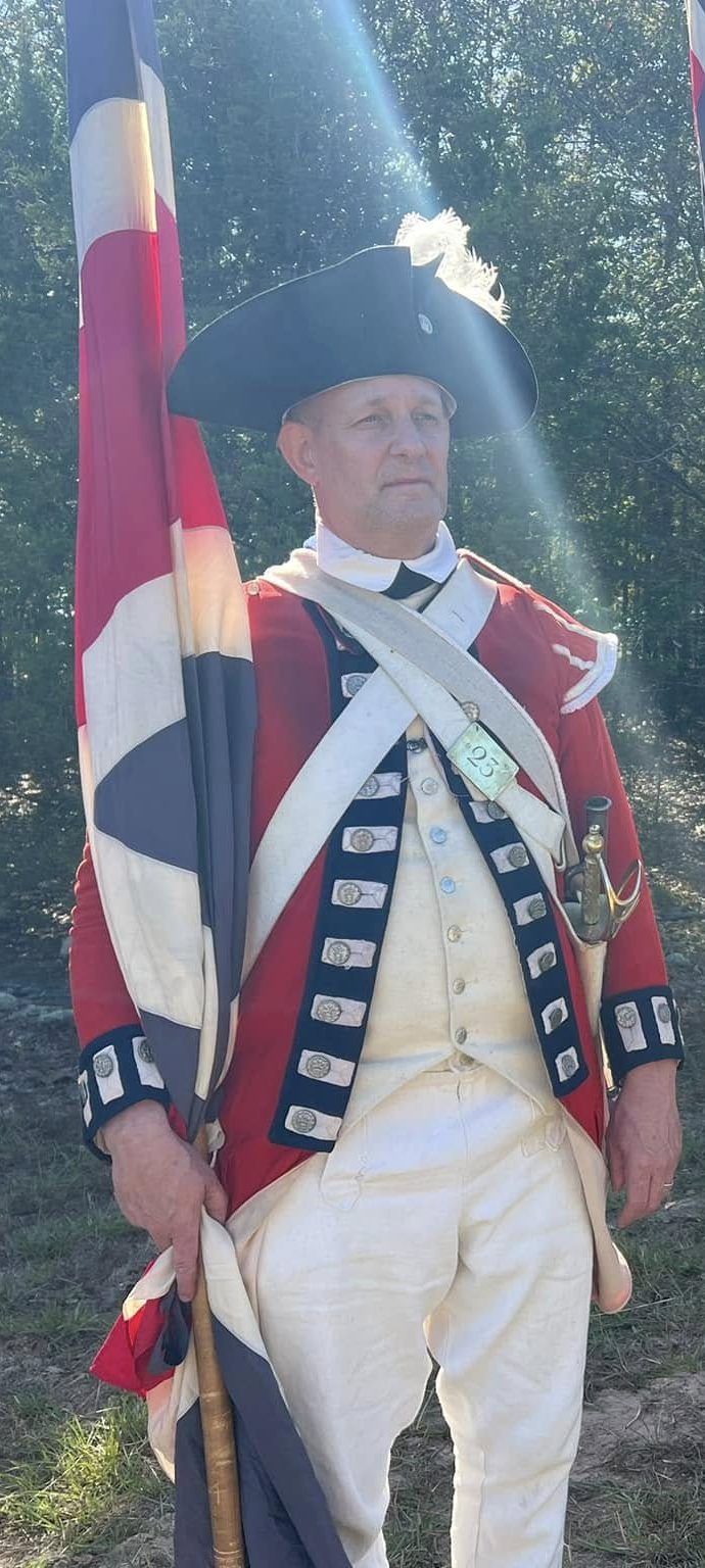 The overall event attendance by reenactors was at record numbers since it was a BAR and British Brigade event. We also brought our Regimental Colours for the first time in over 10 years – all thanks to Tim’s relentless efforts!!! At Camden it was appropriate since Sjt Roger Lamb actually carried them in the battle.
