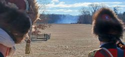 Another cold day at Princeton in January (at least Eric thought so; Alex thought it was quite balmy for January) – we only had a few 23rd in attendance but it was a quality few! Alex Ivanchishin, Eric Spaar, Denis Messier and Jordan Rowland marched out with the British line fielding with the 42nd Highlander Grenadiers and performed valiantly. As is the custom for this event, on Saturday we traveled north; and on the way Alex, Jordan and Denis visited an historic site. This year it was Valley Forge, PA. We stayed at Alex’s loyalist homestead in NJ and Eric visited with his parents in Cherry Hill, NJ. We