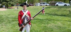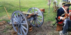 Richard brought his 3 pound cannon (Grasshopper) out again and had a wonderful display table set up with it. His cannon and table display had a steady flow of people gravitating to it. We again had multiple drill times combined with firing demonstrations and our two Americans (Nolin Jones and Jon Spaar) skirmishing against us.